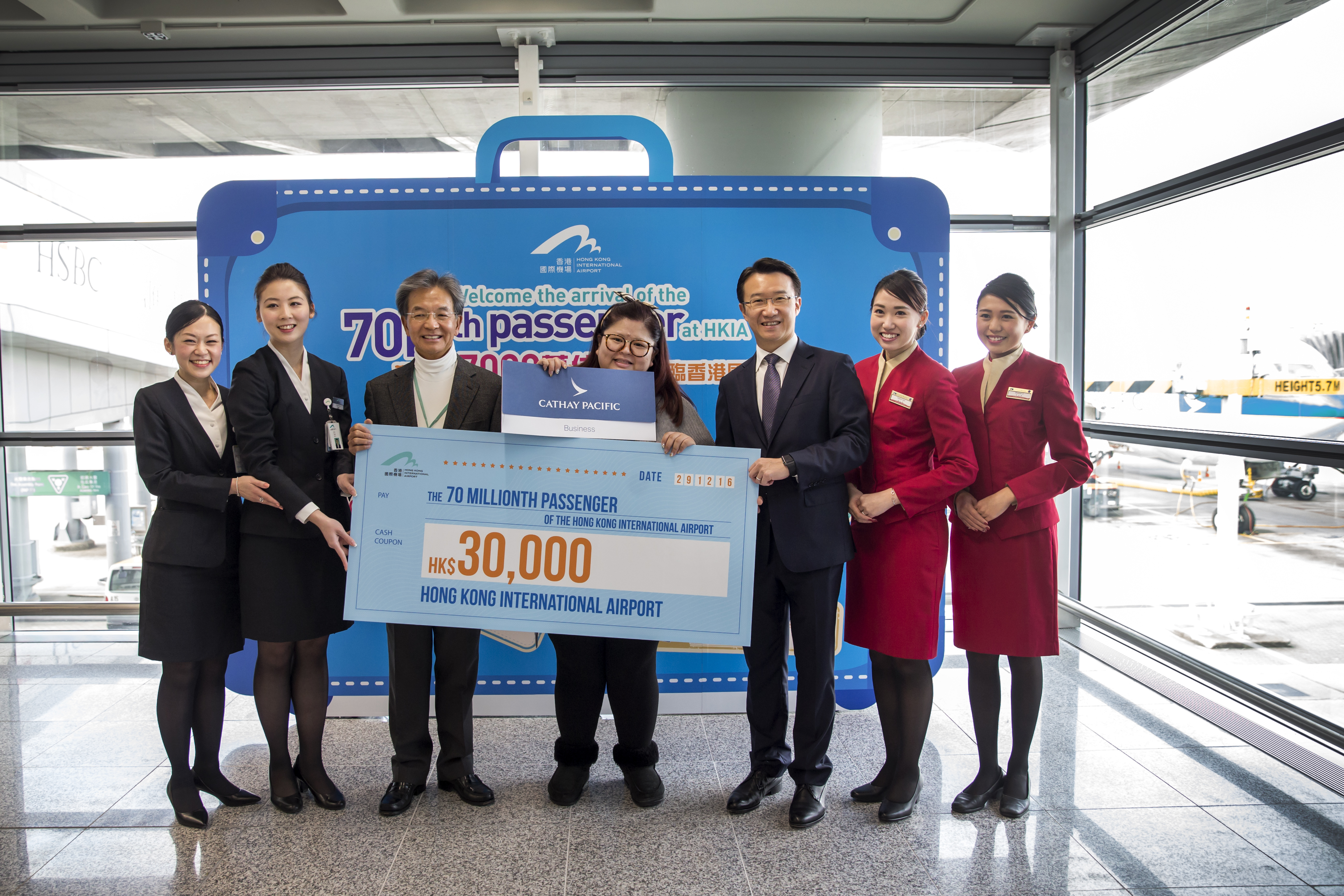 國泰航空恭賀香港國際機場 2016年第7000萬名旅客抵港
