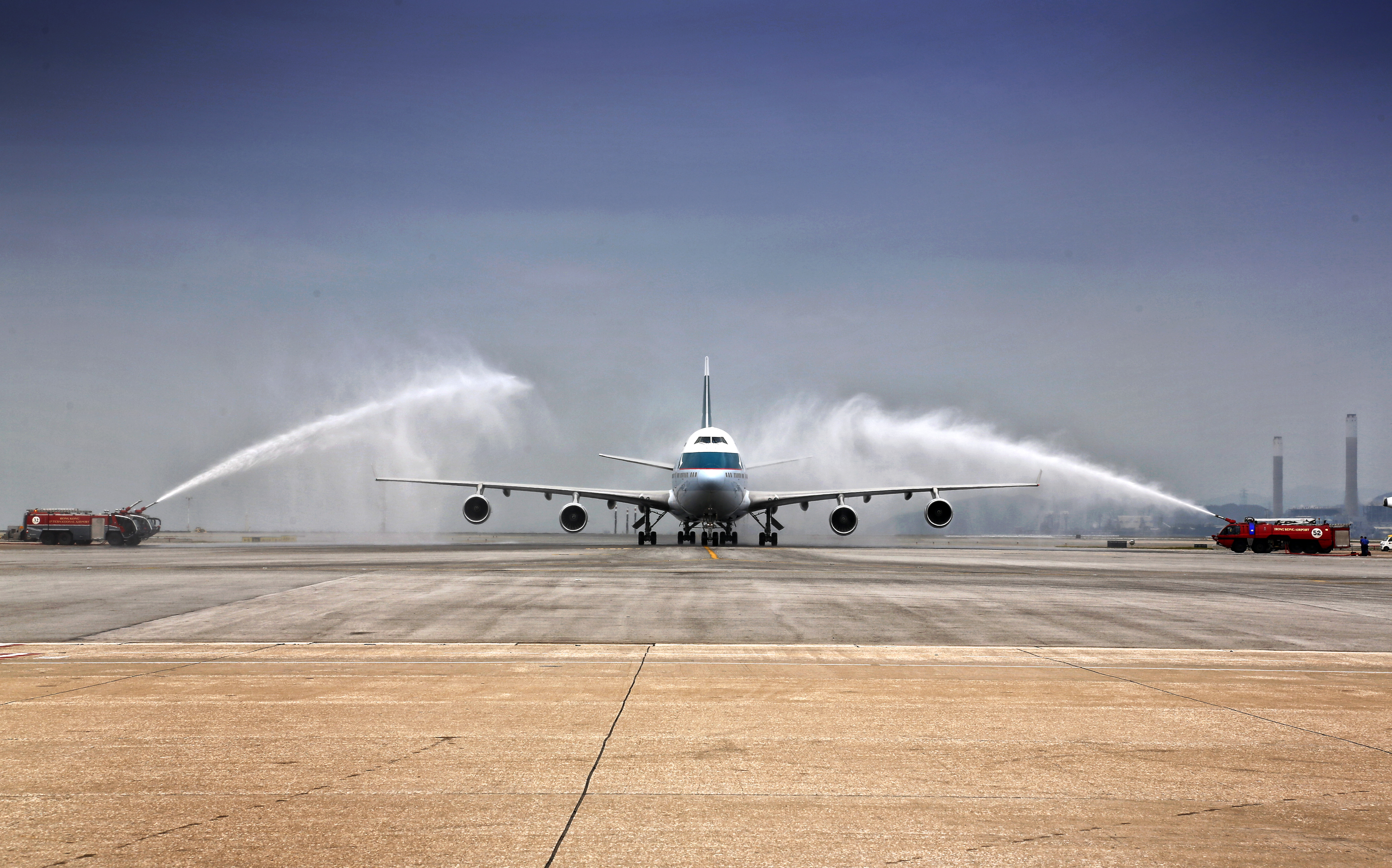 航機在降落香港國際機場後,被冠以射水敬禮儀式,以表揚客機的成就。