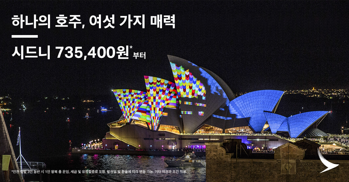 - 다양한 취항 도시 및 운항 스케줄로 각기 다른 매력의 호주를 경험할 기회